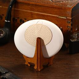 Сувенирная тарелка изготовлена из керамики с добавлением орнамента из гипса и минералов.