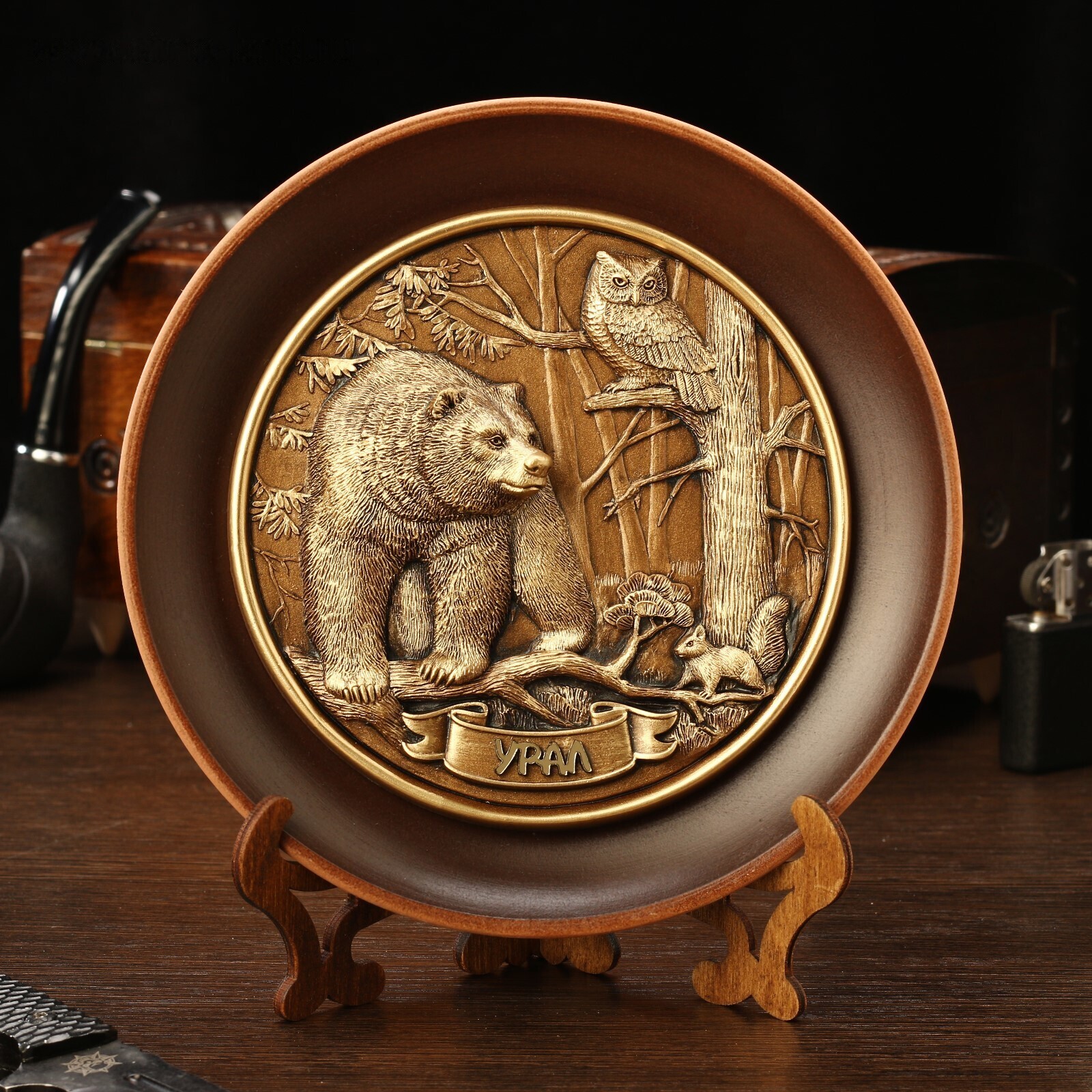 Тарелка сувенирная "Медведь,сова и белка", керамика, гипс, d=16 см