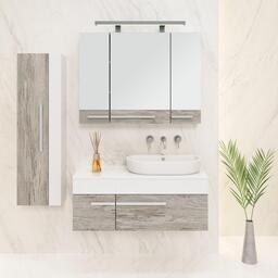 Шкаф-колонна подвесной с распашнойдверью, за которойтри внутренние полки.