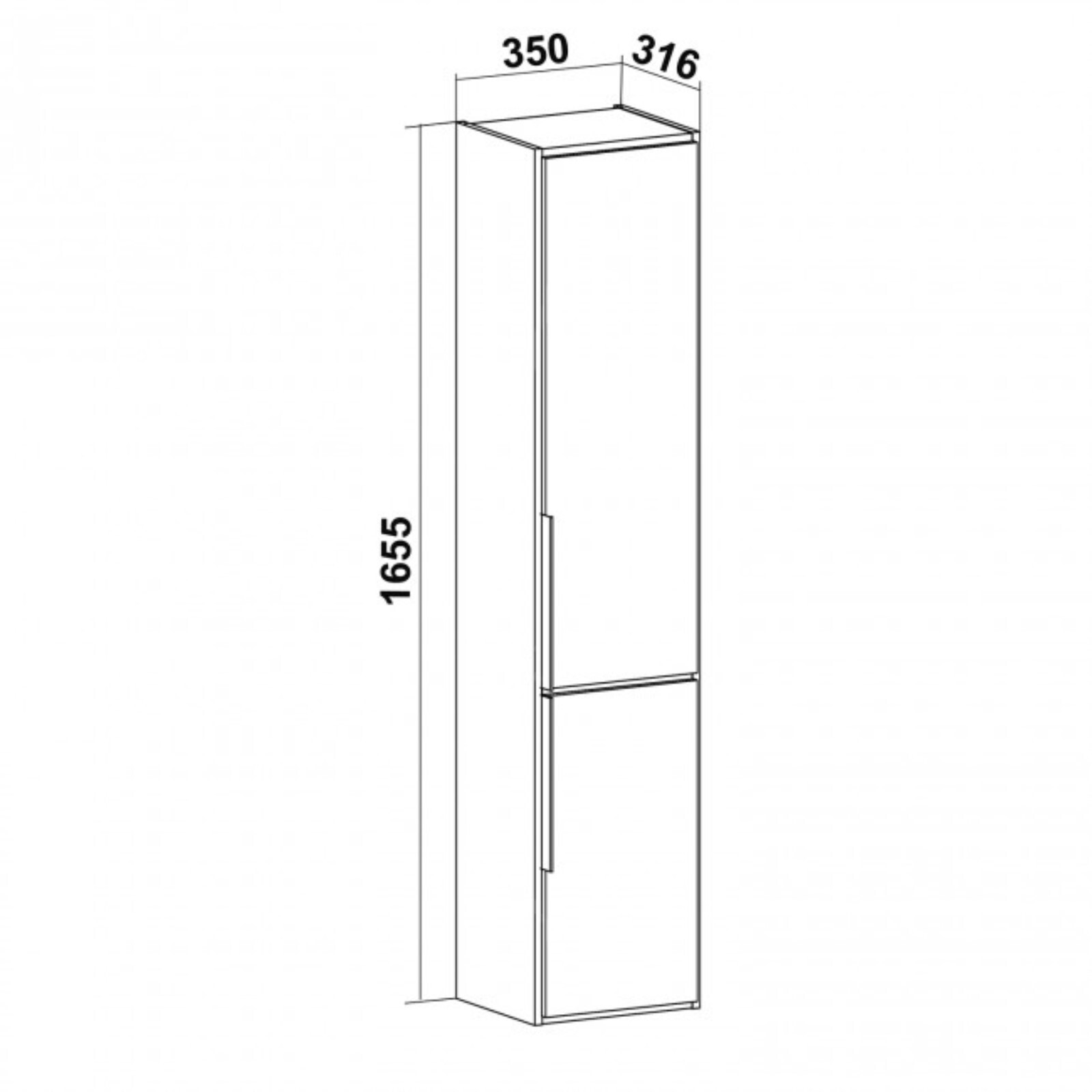 Шкаф-колонна подвесной имеет два отделения с распашными дверками.