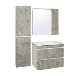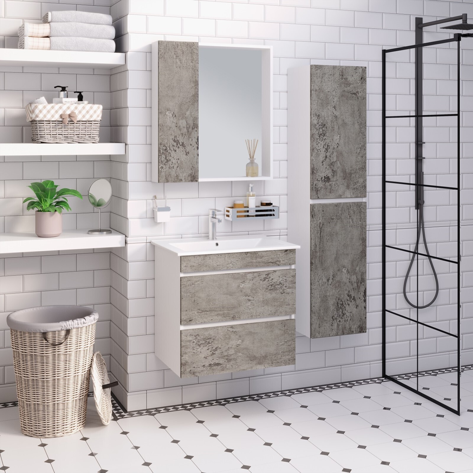 Корпус изделий изготовлен из белого ЛДСП, а фасады облицованы матовой пленкой ПВХ цвета "серый бетон".