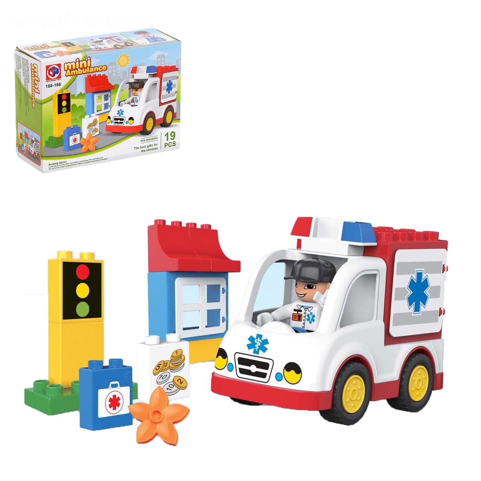 Скорая помощь спешит спасать людей! С этим набором ребёнок представит себя водителем спецслужбы и будет доставлять пациентов в больницу. Дополнительные аксессуары сделают игровые сюжеты разнообразней. Из 19 крупных элементов малыш построит служебный автомобиль, части госпиталя, светофор и медицинский чемодан.