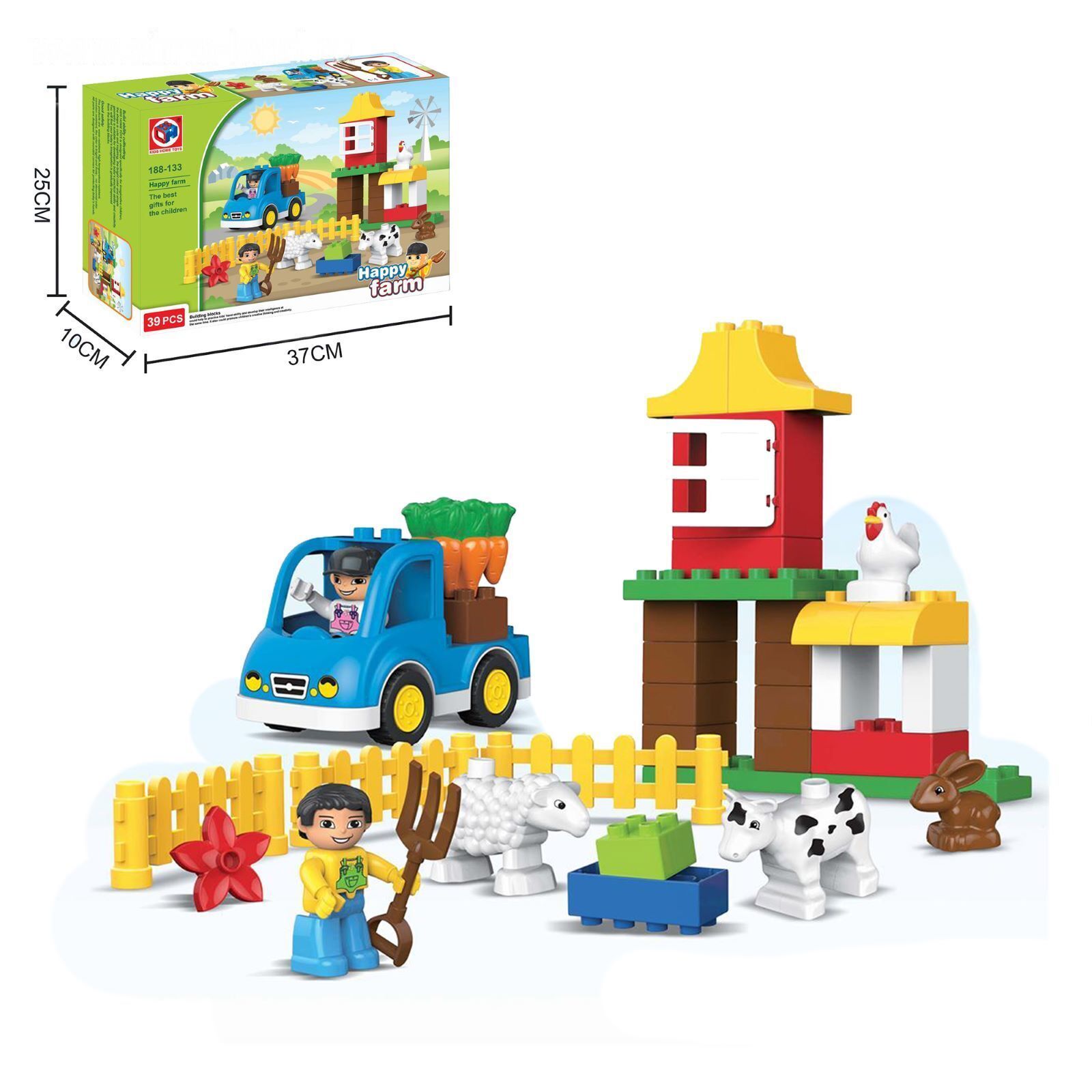 С этим необычным конструктором ребёнок станет обладателем собственной фермы. Юный земледелец с удовольствием будет выращивать овощи и заботиться о животных. Из 39 крупных деталей малыш соберёт автомобиль, фигурки фермеров и обитателей ранчо.