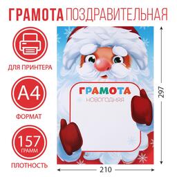 Грамота новогодняя «Дед Мороз», А4., 157 гр/кв.м