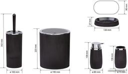 - Комплектация ведро для мусора, дозатор жидкого мыла, ершик для унитаза, мыльница, стакан для зубных щеток