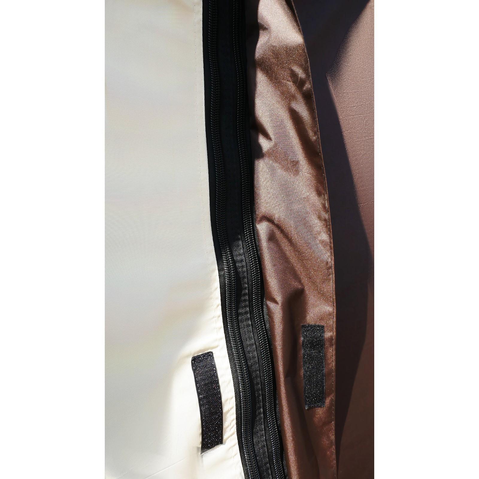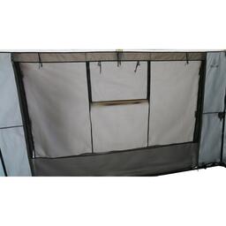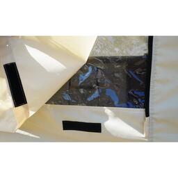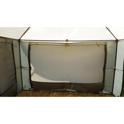 Так же удобно открывание основного входа, можно раскрыть полностью или половину. 2 стены шатра-беседки оснащены смотровыми окнами, друг напротив друга. Максимально удобное открывание стенок благодаря двустороннему бегунку на двойных молниях.
