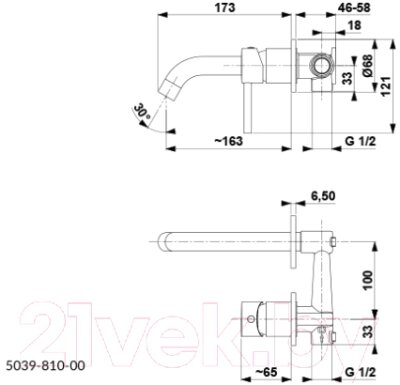 • Длина (вылет) излива 163 163 мм