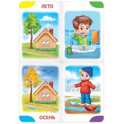 Находить сходства — один из базовых принципов развития мышления и логики малышей. Именно на этой основе создана серия книг «Найди пару», странички которых разрезаны пополам. Ребёнок выбирает картинку с одной стороны и ищет ей пару, листая странички с другой. Например, к осенней картинке нужно найти изображение, где мальчик собирает букет из жёлтых листьев.