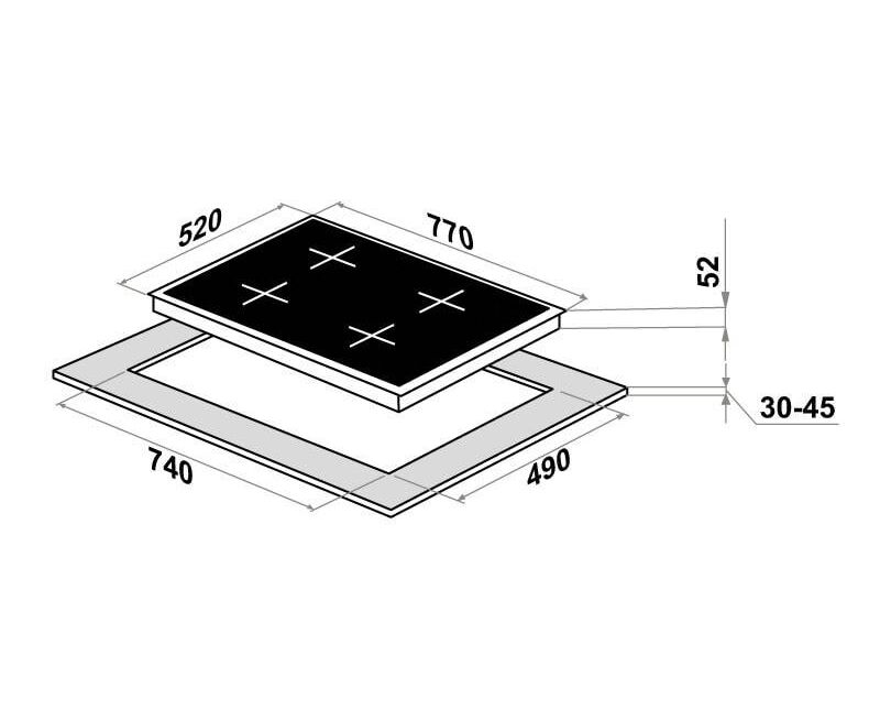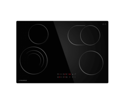 Стильная электрическая встраиваемая варочная панель шириной 77 см выполнена из ударопрочной стеклокерамики черного цвета. Благодаря идеальной гладкости и высокой износостойкости она легко очищается.