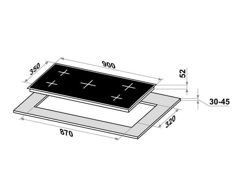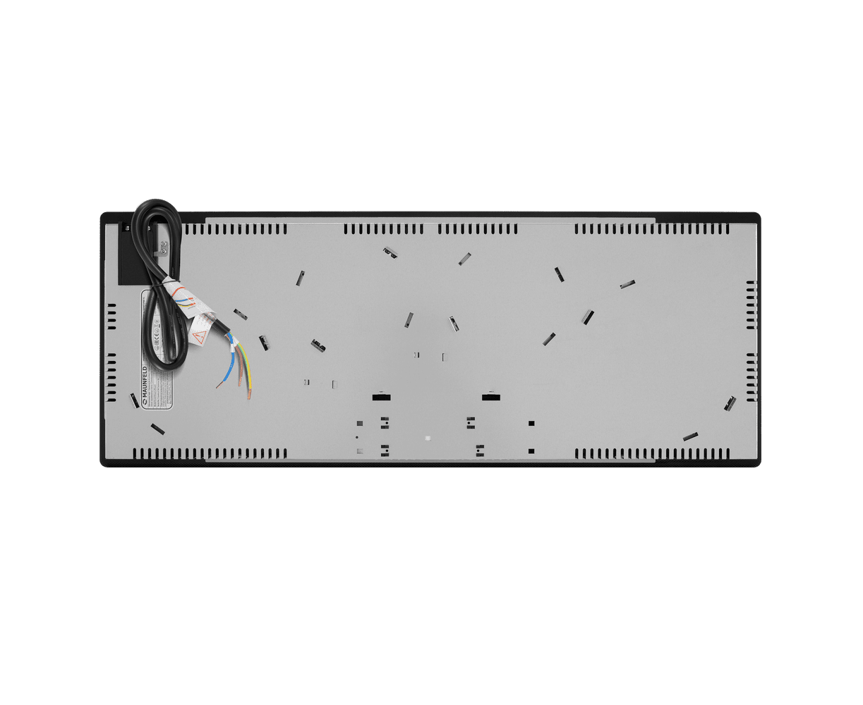 Стильная электрическая встраиваемая варочная панель шириной 90 см выполнена из ударопрочной стеклокерамики черного цвета. Благодаря идеальной гладкости и высокой износостойкости она легко очищается.