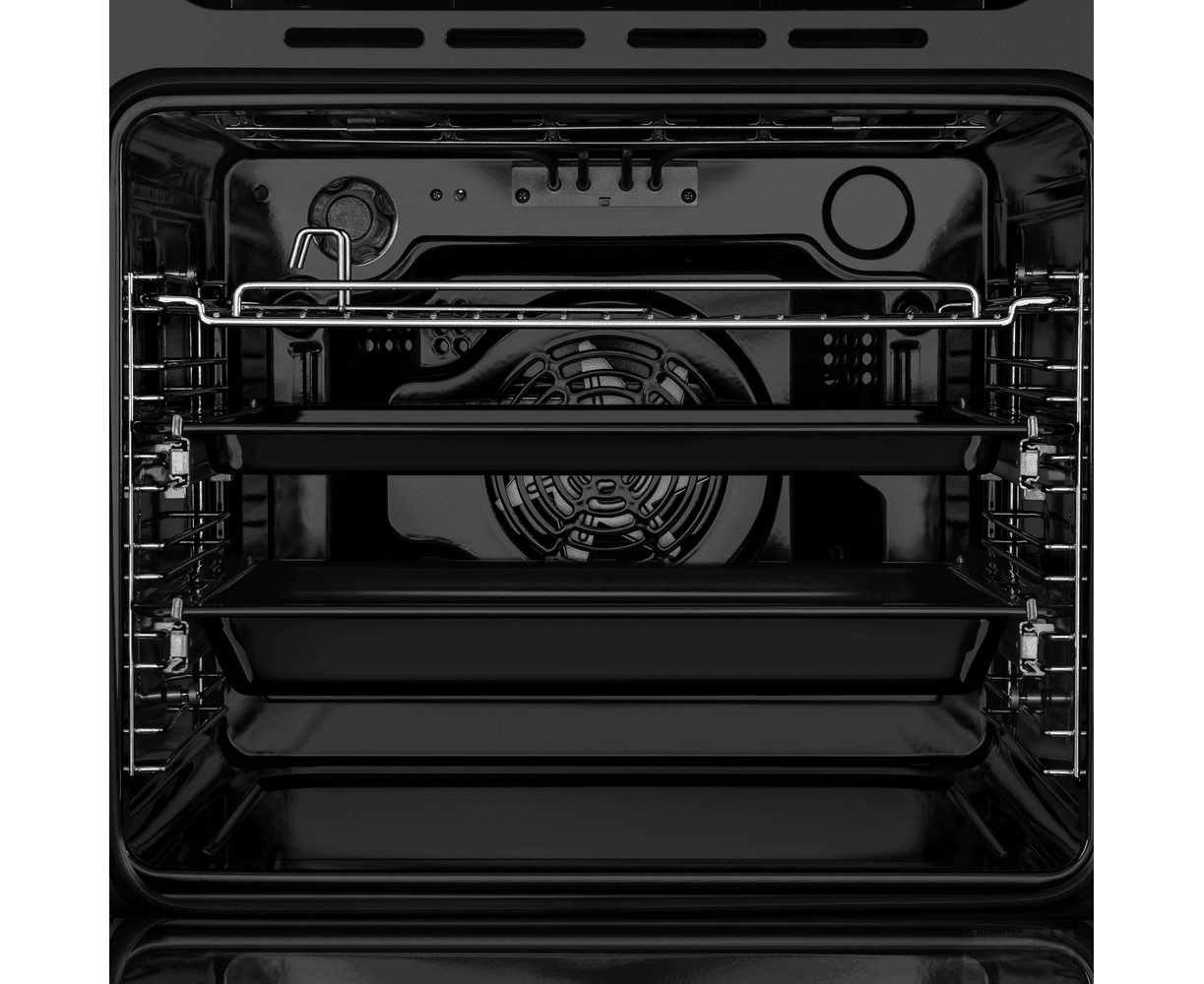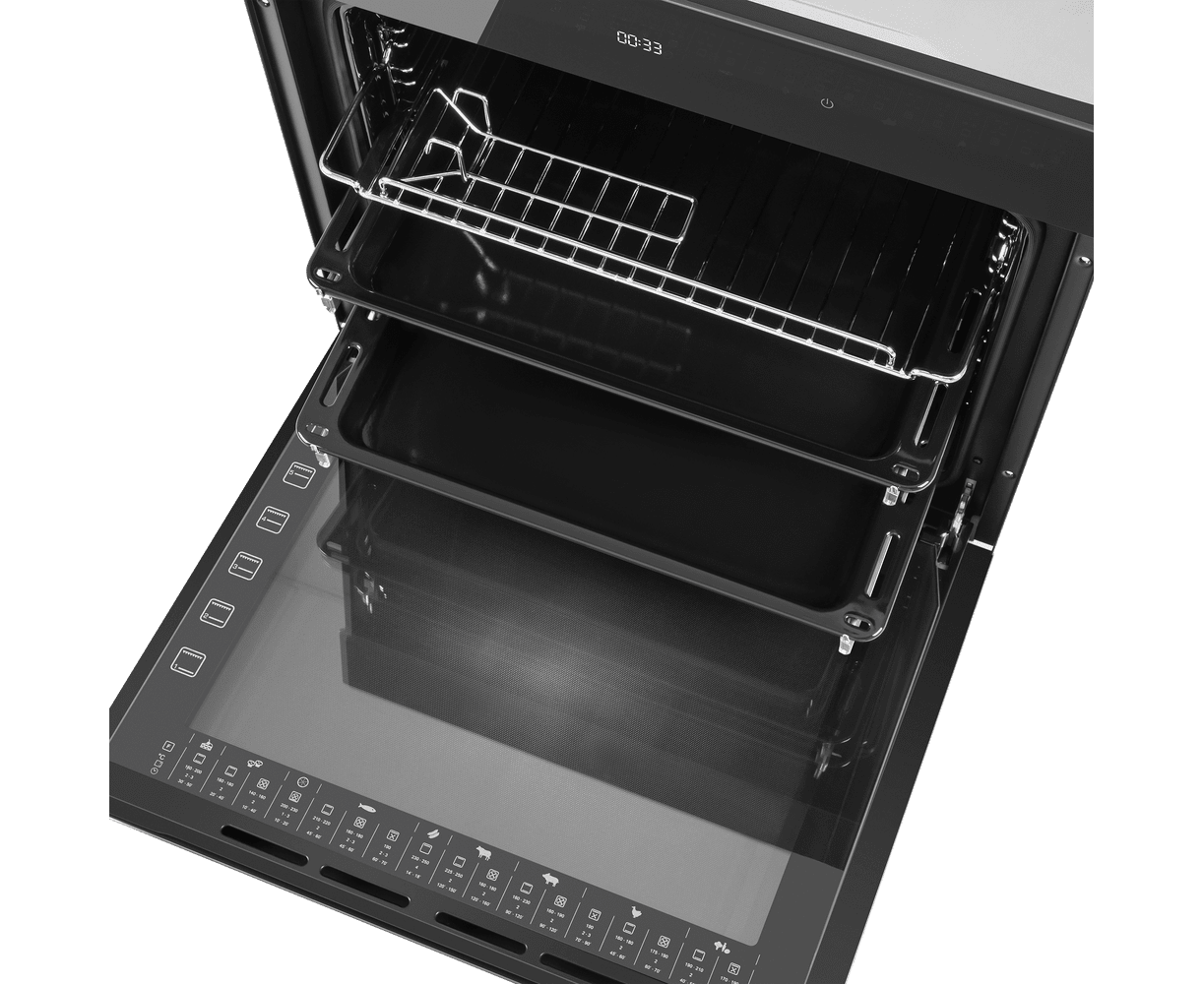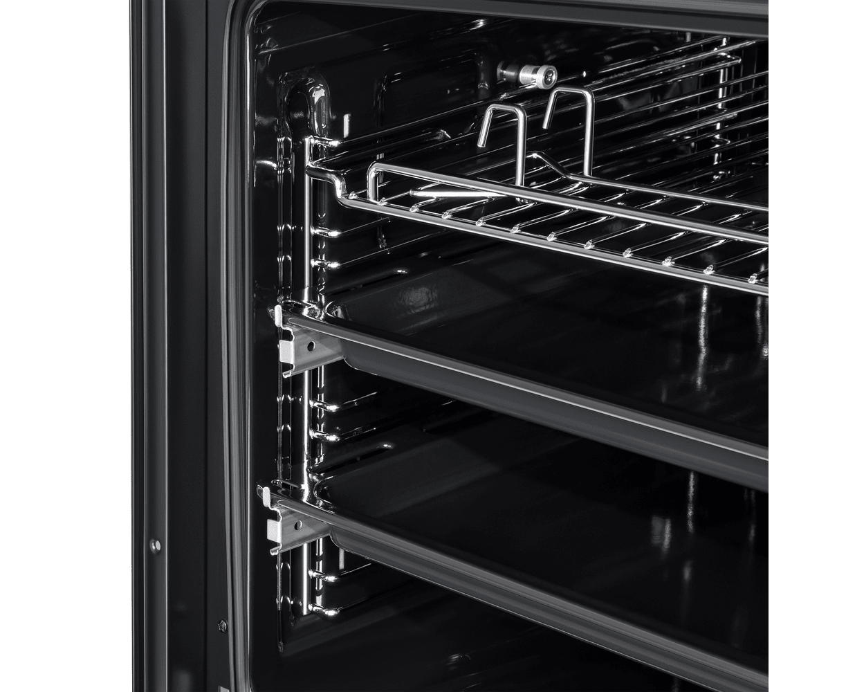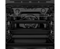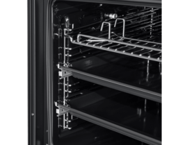 Объем 76 л при стандартных размерах 60 см позволяет готовить одновременно несколько блюд, разместив решетку или противень на одном из 6 уровней боковых направляющих. Два уровня оснащены удобными телескопическими направляющими. Внутреннее покрытие камеры выполнено из специальной легкоочищающейся эмали черного цвета.