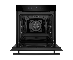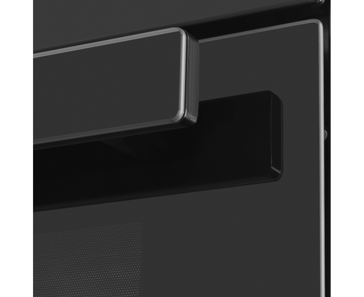 Фронтальная панель дверцы, лицевая часть блока управления и фасад ручки дверцы сделаны из высококачественного жаропрочного стекла черного цвета, окрашенного по всему объему, что является отличительной чертой бытового прибора премиум-класса.