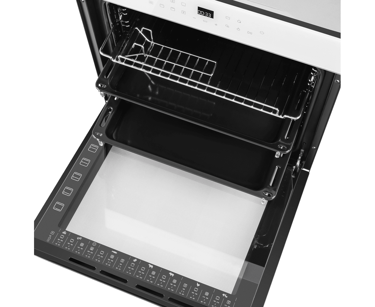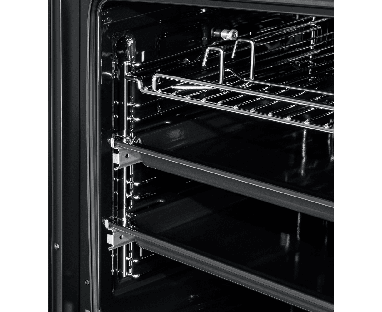 Объем 76 л при стандартных размерах 60 см позволяет готовить одновременно несколько блюд, разместив решетку или противень на одном из 6 уровней боковых направляющих. Два уровня оснащены удобными телескопическими направляющими. Внутреннее покрытие камеры выполнено из специальной легкоочищающейся эмали черного цвета.