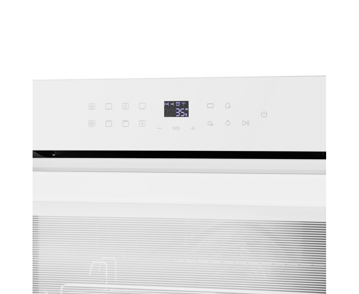 Сенсорный программатор FULL TOUCH с дисплеем COLD WHITE интуитивно понятен и удобен в использовании. Сенсорное управление позволяет выбрать режим работы, температуру, установить таймер, включить функцию бустер и блокировать панель управления. В данной модели поддерживается 11 режимов работы: традиционный нагрев, пицца, разморозка, конвекционный нагрев, нижний нагрев, горячий воздух, малый гриль, большой гриль, брожение, объемный турбогриль, внутреннее освещение.