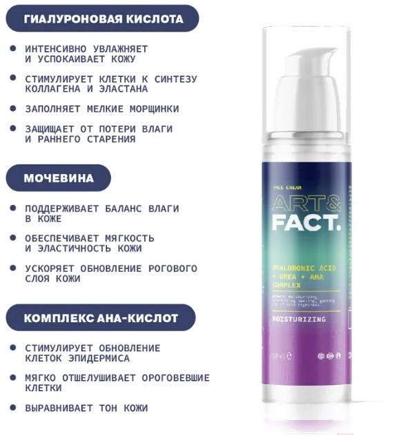 Крем для лица Art&Fact Интенсивно увлажняющий Hyaluronic Acid + Urea + AHA Complex (50мл)