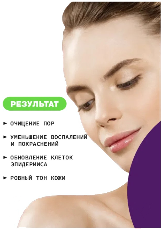 • Действие сужение пор, выравнивание тона, успокаивающее, осветляющее, себорегулирующее, очищающее, отшелушивающее, смягчающее, противовоспалительное, антиоксидантное, активизация обменных процессов, заживляющее, защита от негативных факторов окружающей среды, выравнивание рельефа