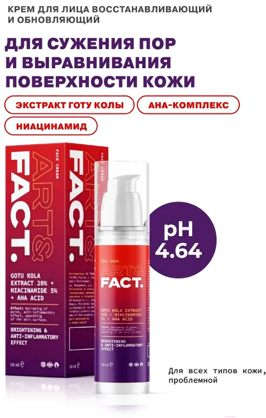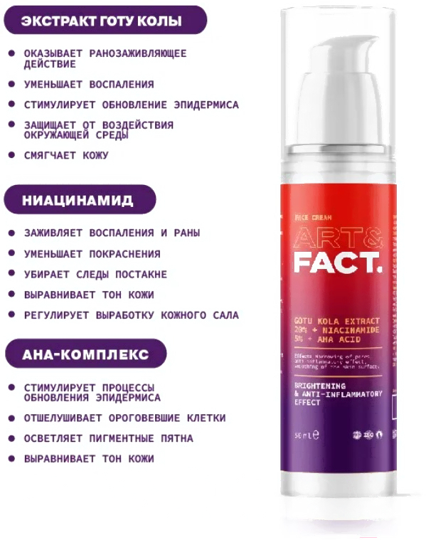 Крем для лица Art&Fact Восстанавливающий и обновляющий GotuKola 20% + Niacinamide 5% (50мл)