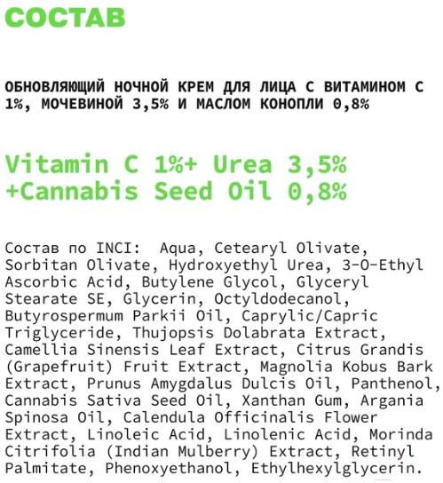 • Активные ингредиенты витамин C, мочевина, масло конопли