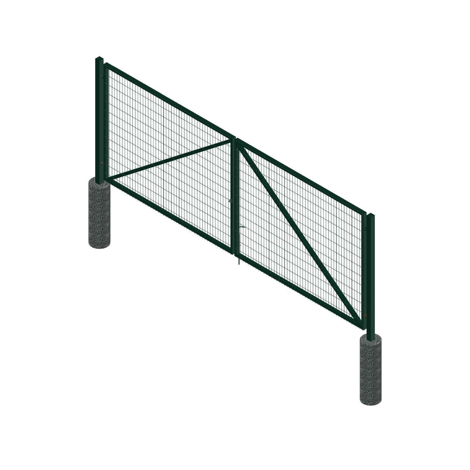 Ворота, распашные, с заполнением, 4 × 1,5 м, с проушинами, 2 фиксатора, зелёные