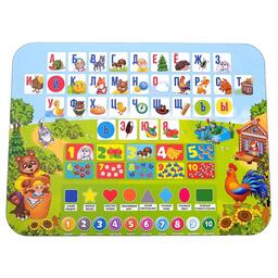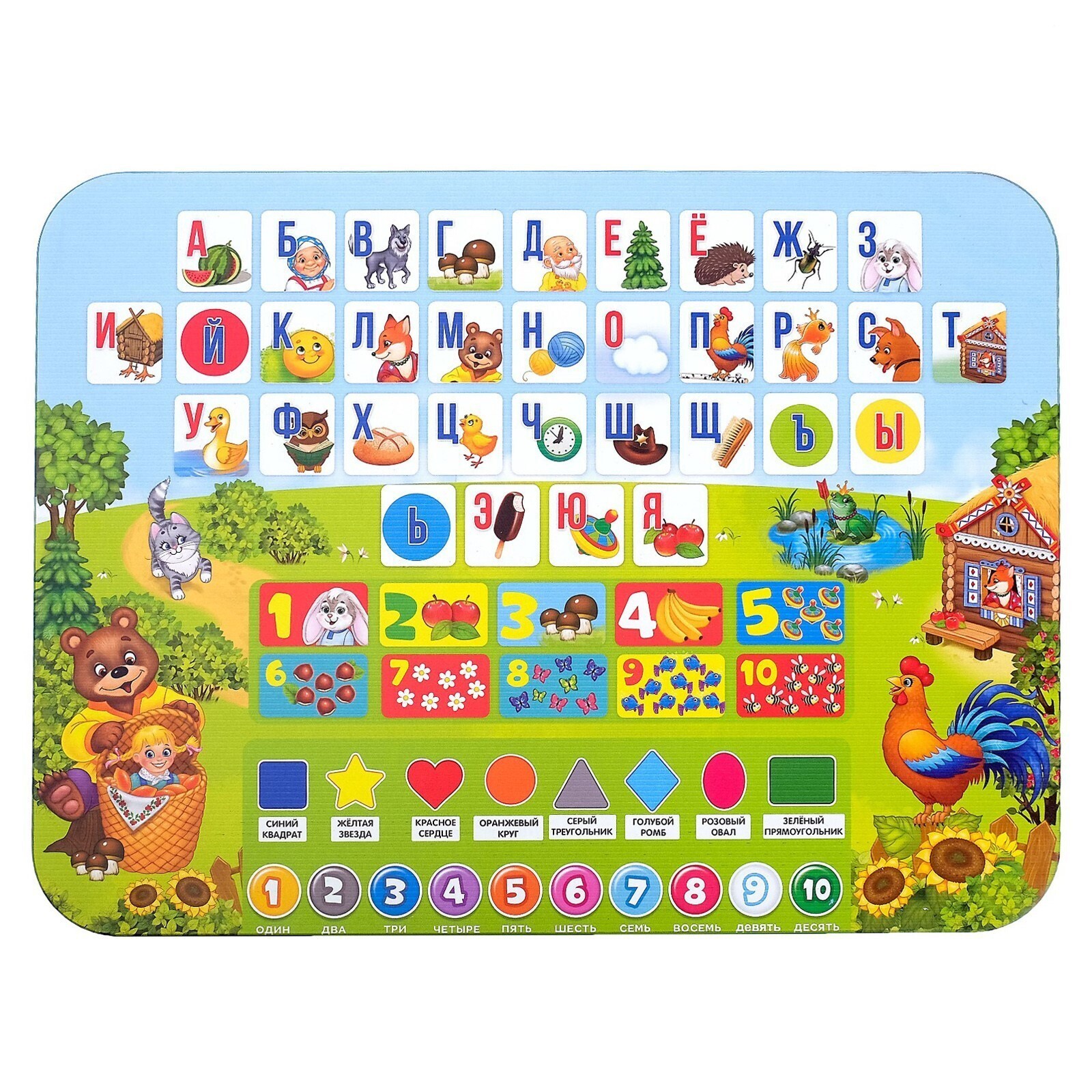 Стол «Алфавит» — это компактный и полезный помощник для самых маленьких. Ножки выполнены из дерева, а столешница — из ЛДСП. Подходит для дошкольников ростом от 100 см. На столешницу методом печати нанесён обучающий материал: русский алфавит, геометрические фигуры, цифры до 10, цвета и их названия.