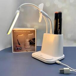 Умная настольная светодиодная лампа 3 в 1 со встроенным аккумулятором USB (лампа, вентилятор, органайзер)