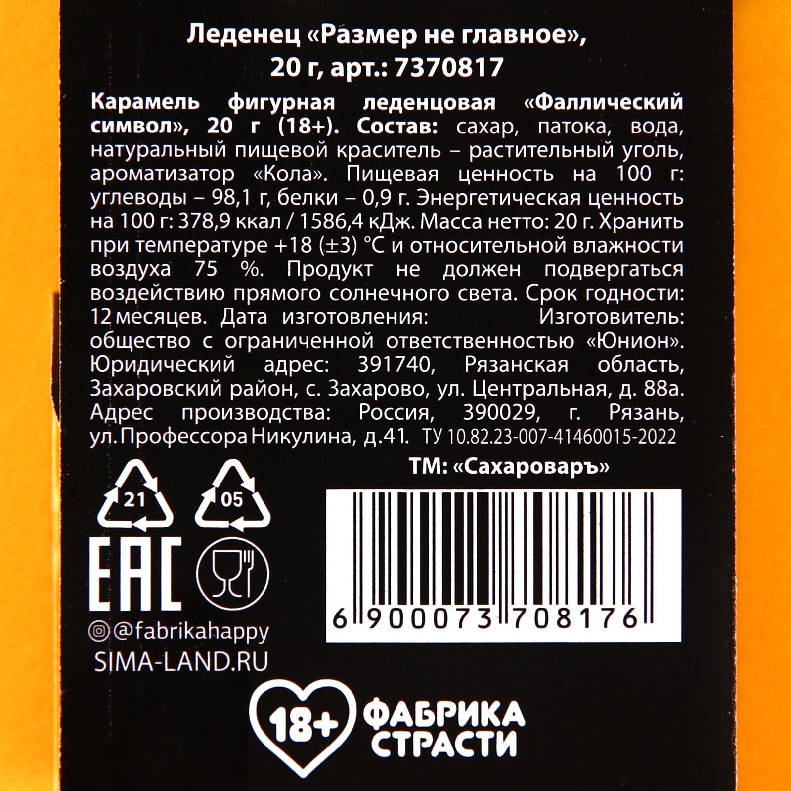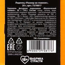 Леденец «Размер не главное», вкус: кола, 20 г.