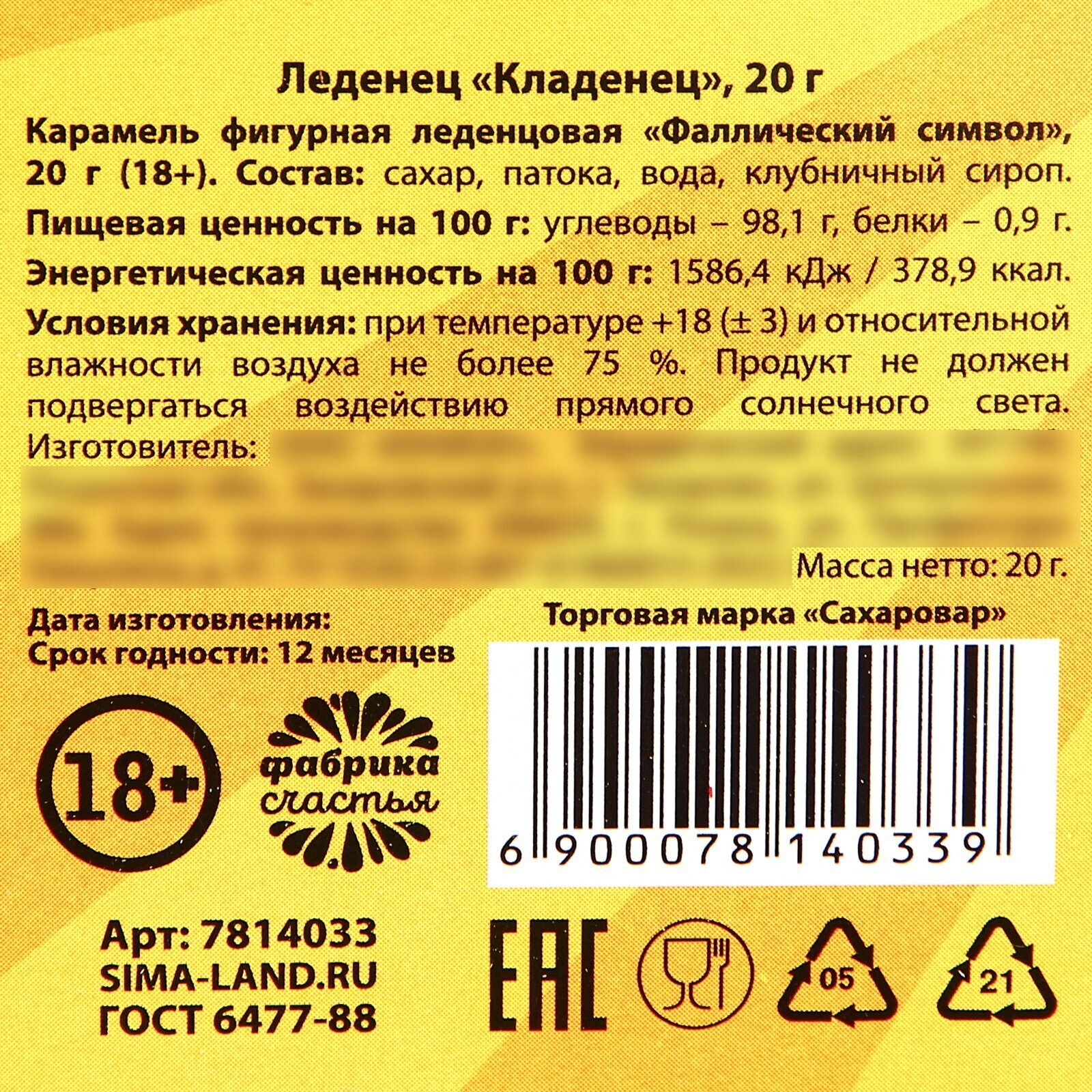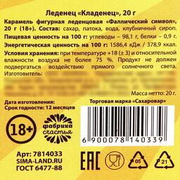 Состав: сахар, патока, вода, клубничный сироп. Масса нетто: 20 г. Срок годности: 12 месяцев
