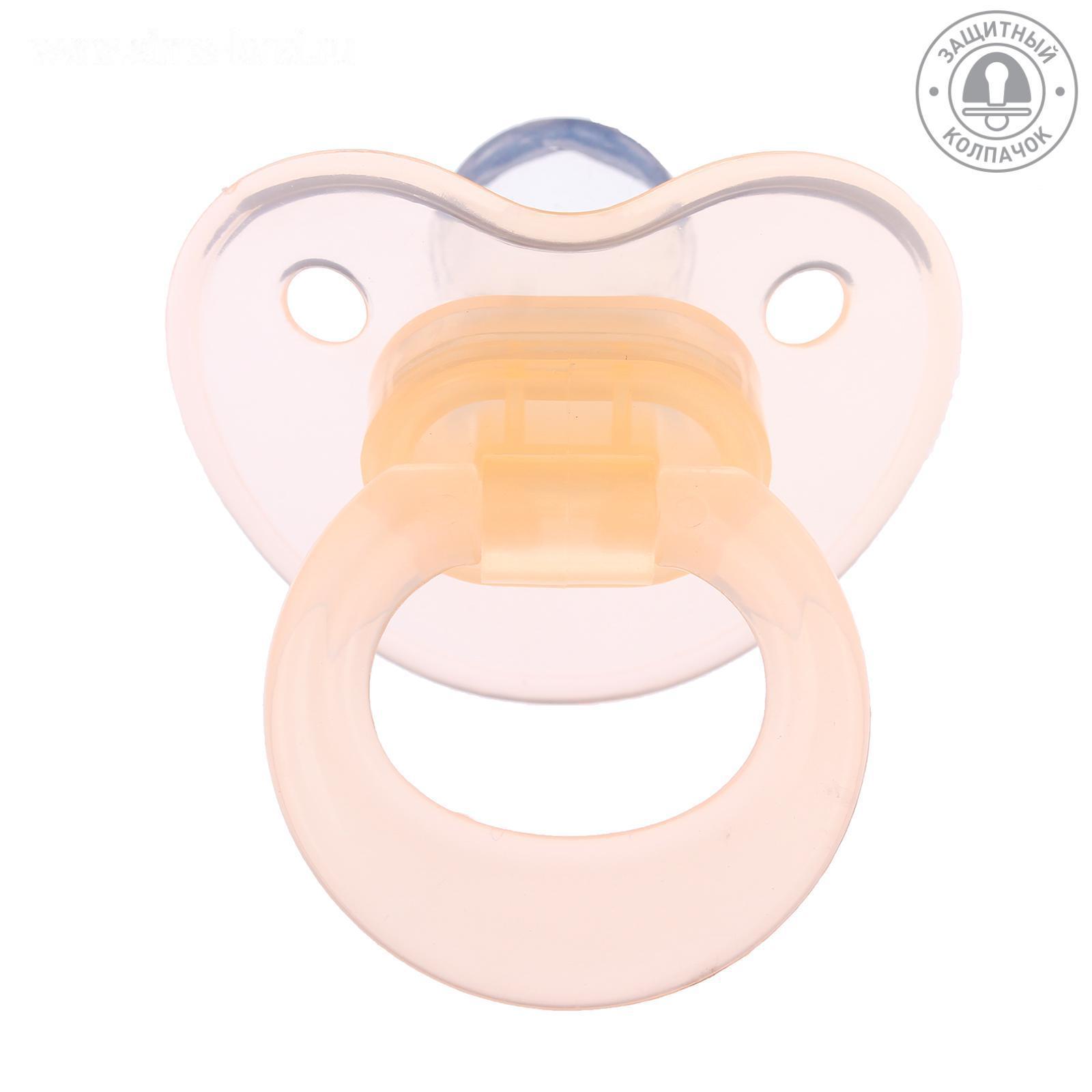 Пустышка силиконовая ортодонтическая с колпачком, от 0 мес., цвет персиковый