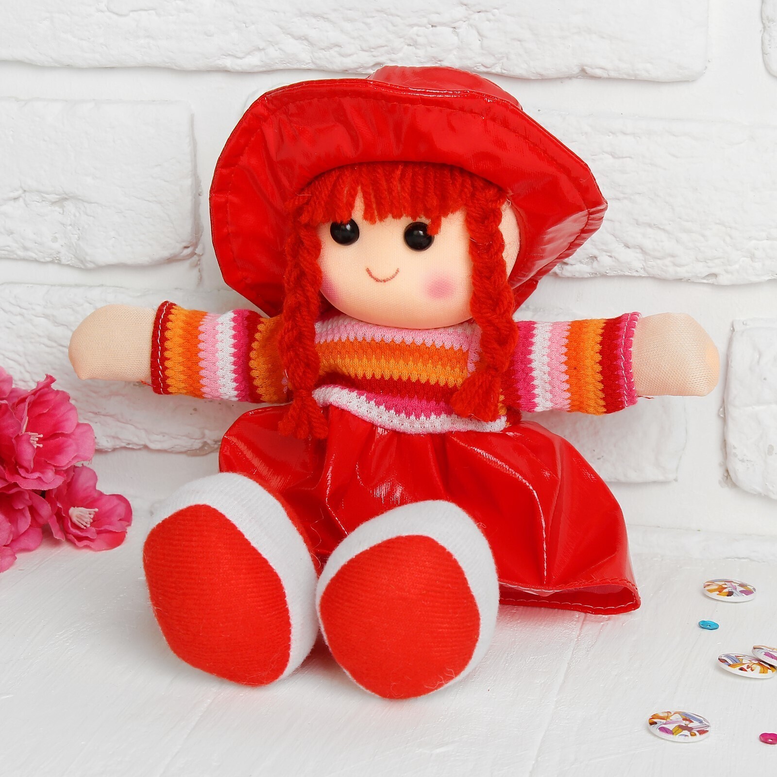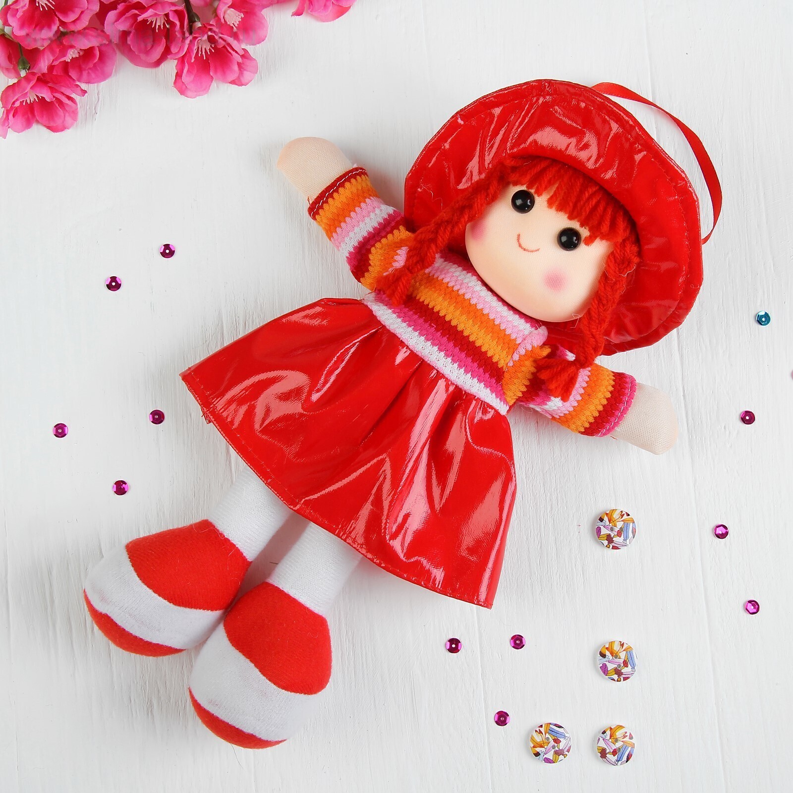 Мягкая игрушка «Кукла», платье в полоску, цвета МИКС