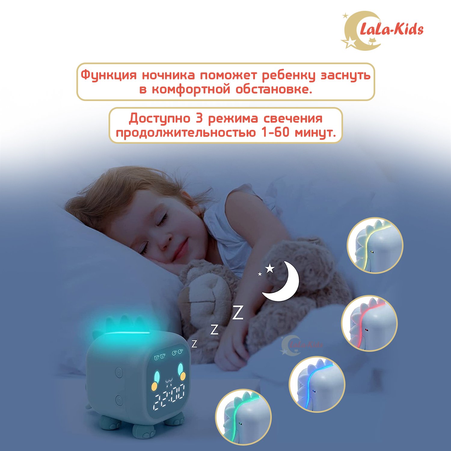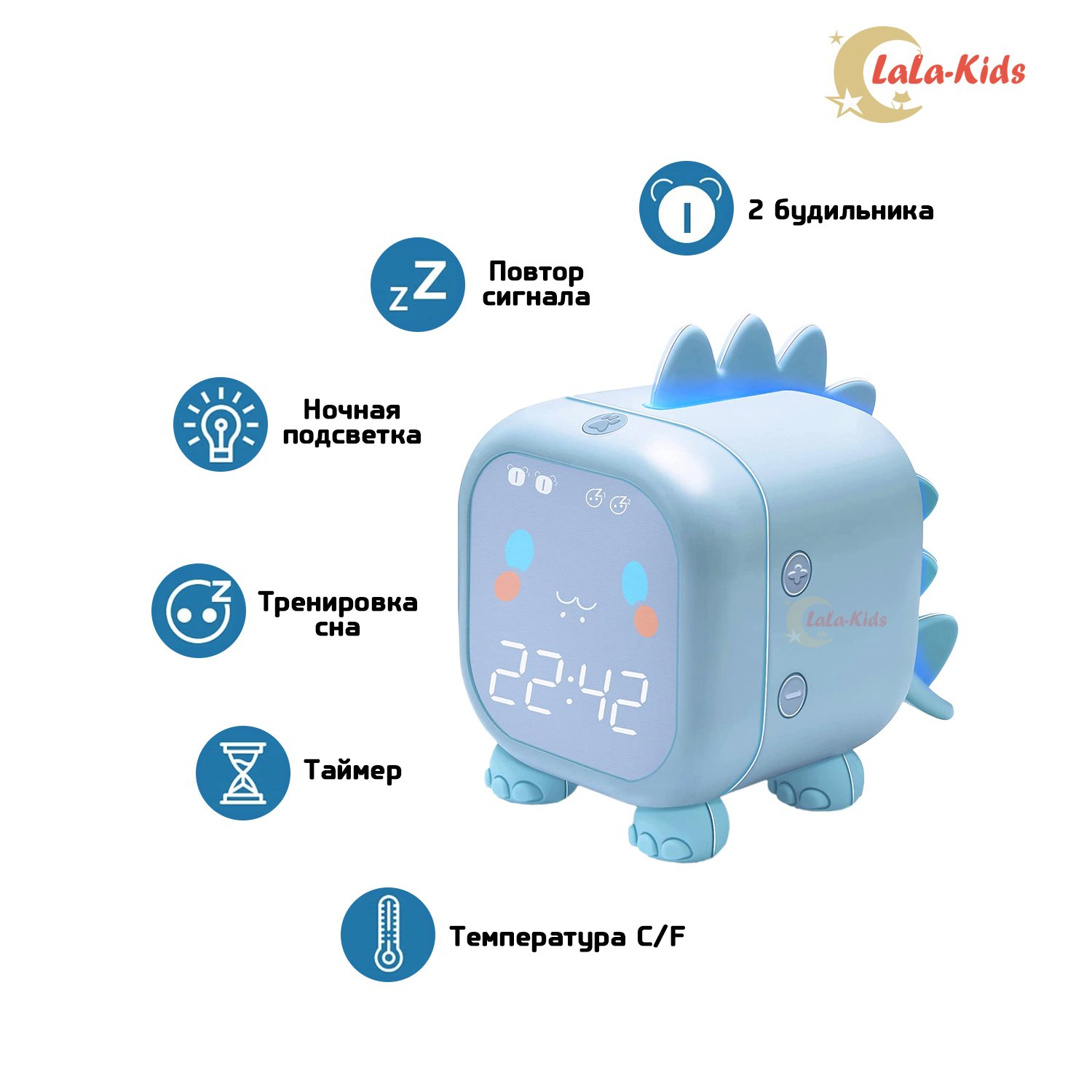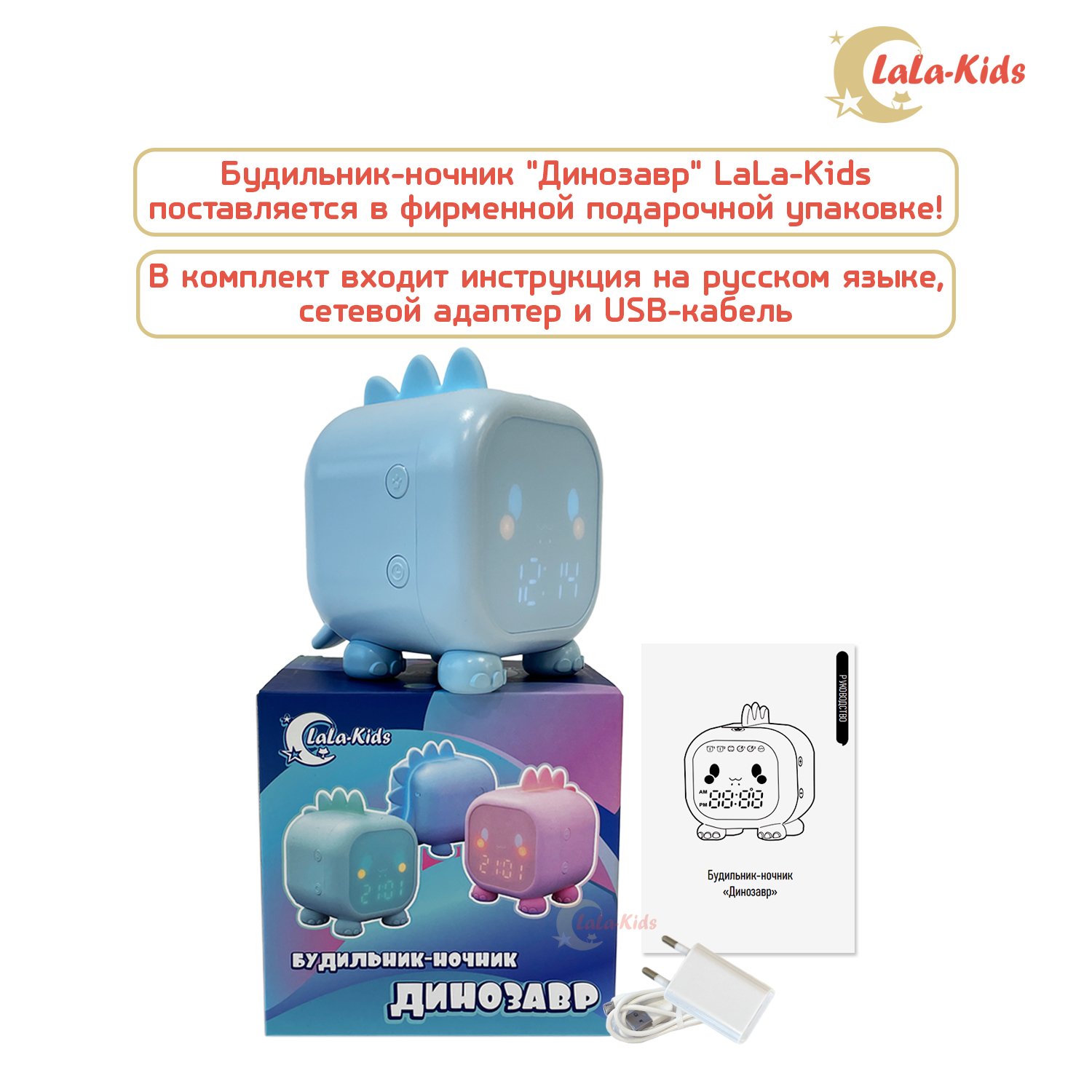 Детский электронный будильник LaLa-Kids Динозавр LLK005620голубой