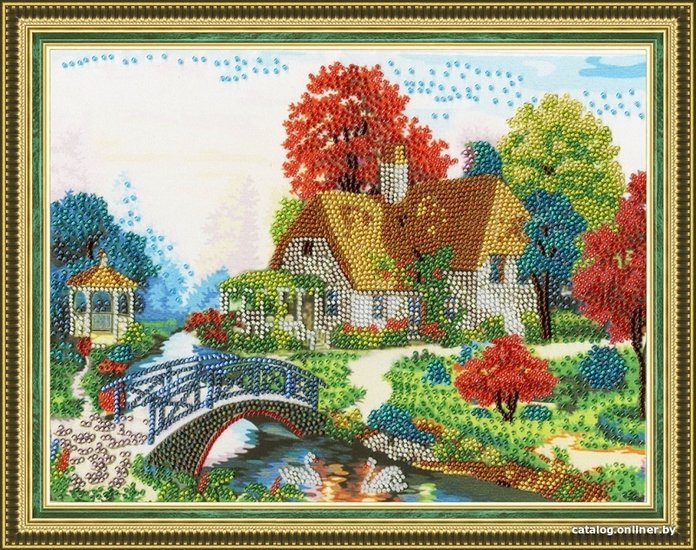 - Комплектация В набор входит:ткань с нанесенным рисунком (искусственный шелк);бисер (22 цвета);игла для вышивания;схема для вышивания;инструкция на русском языке.Набор из серии «Рисунок на ткани». Частичное заполнение.