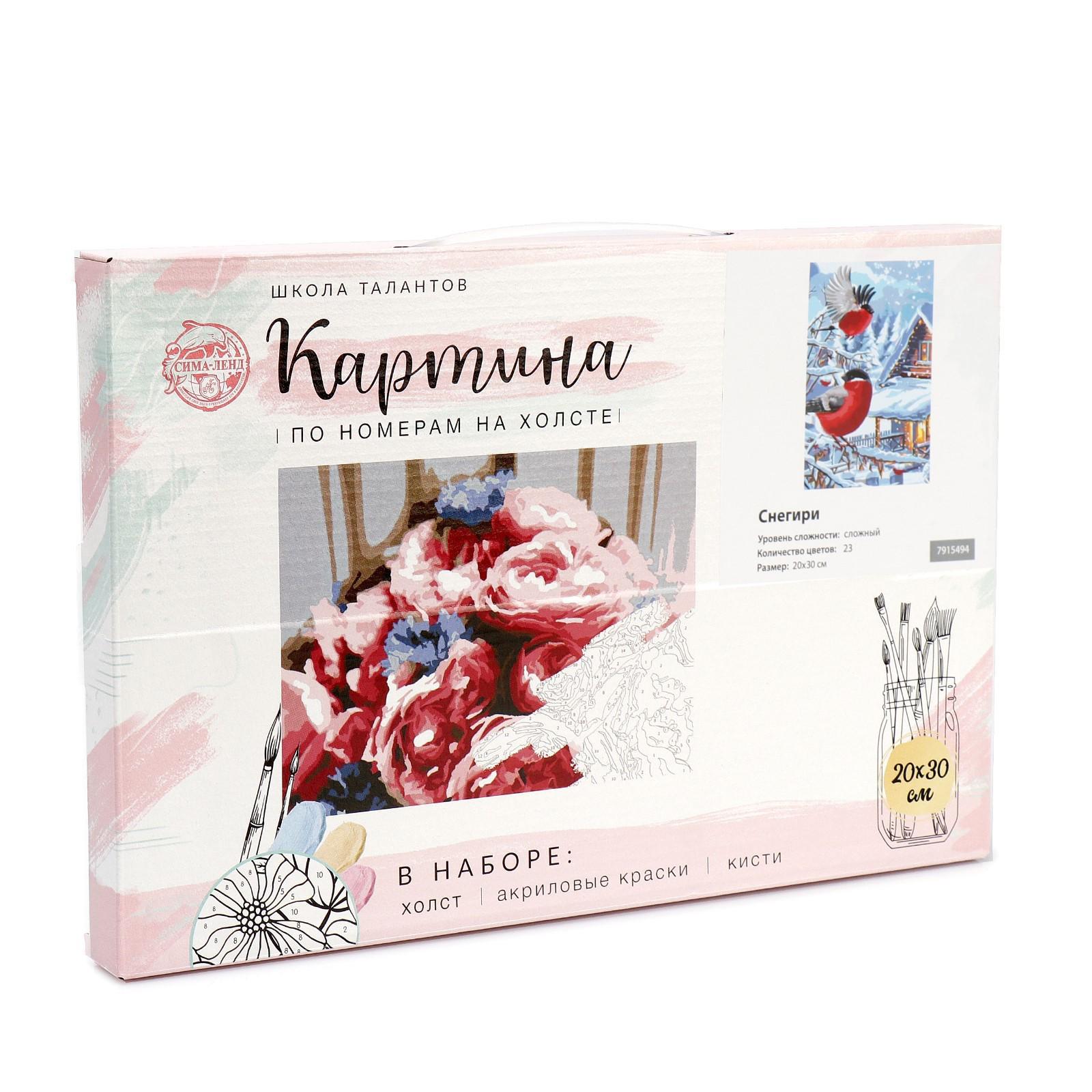 Картина по номерам на холсте с подрамником «Снегири» 20х30 см