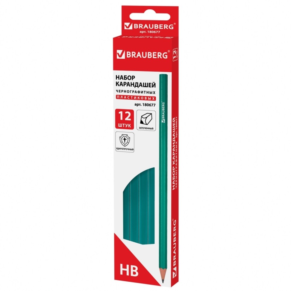 Заводская упаковка нарушена или отсутствует. Товар НОВЫЙ, в полной комплектации. / Набор чернографитных карандашей изготовлен из высококачественных полимерных материалов. Имеет эластичный пластиковый корпус и ударопрочный грифель. Твердость: HB. Заточенный: да. Диаметр грифеля: 2.05 мм. Количество карандашей в наборе: 12 шт.. Количество твердостей в наборе: 1. Форма корпуса: шестигранная. Ударопрочный грифель: да. Длина карандаша: 176 мм. Материал корпуса: пластик. Цвет корпуса: зеленый. Количество дизайнов в упаковке: 1. Упаковка: картонная коробка с европодвесом Бренд - BRAUBERG. Производитель - Китай. Артикул - 180677. Штрихкод - 4606224071305