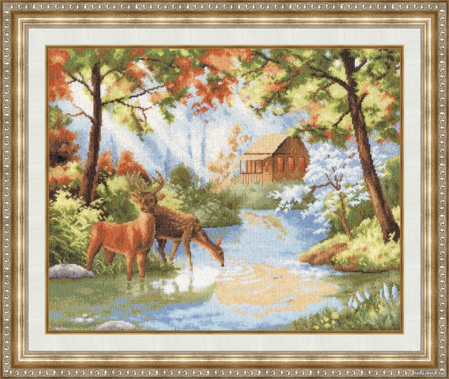 - Комплектация В набор входит:канва Aida 16 ct Zweigart кремоваяхлопковые нитки мулине Madeira (41 цвет)игла для вышиваниячерно-белая символьная схема для вышиванияинструкция на русском языкеНабор из серии «Лирический пейзаж».Вышивается крестом в 2 нити.