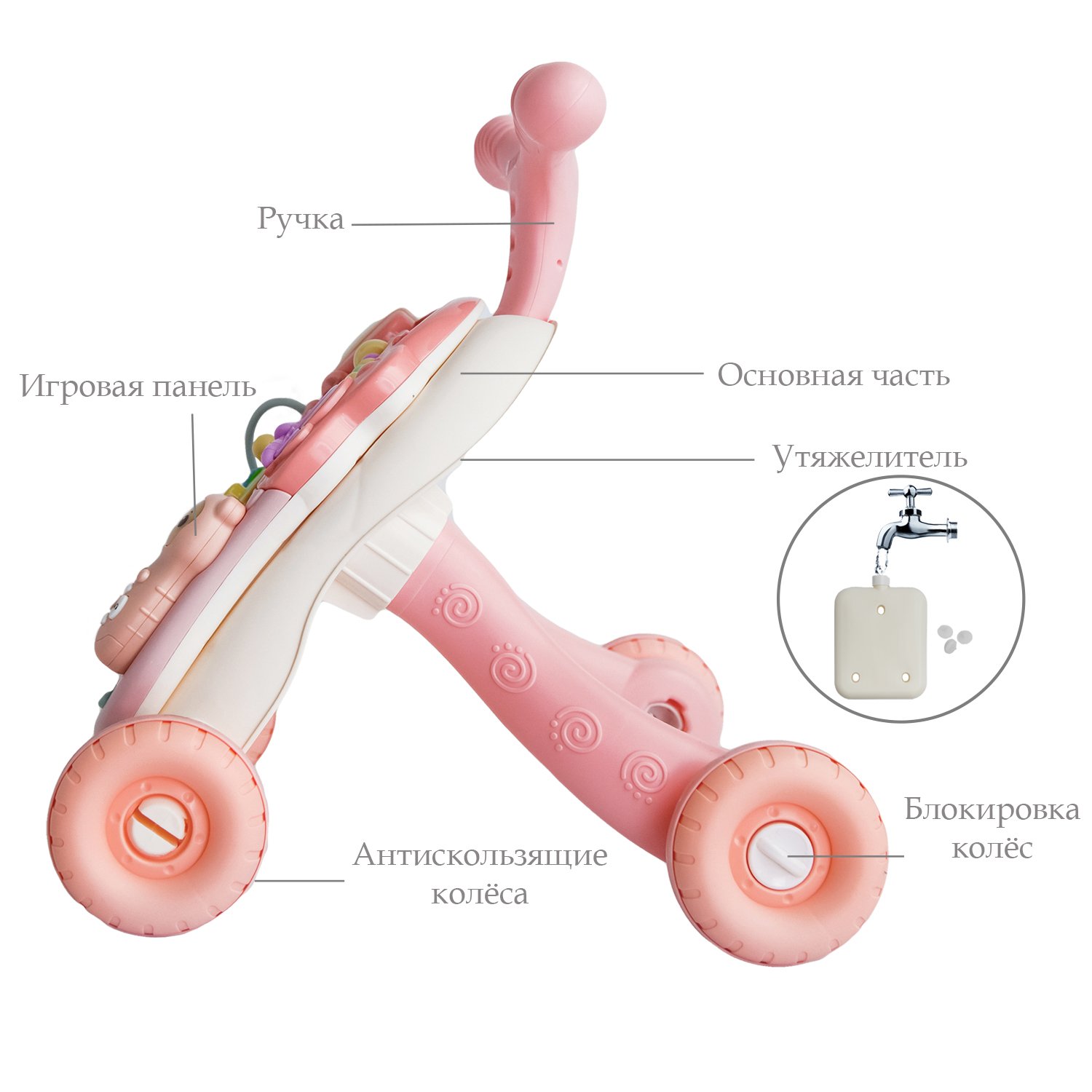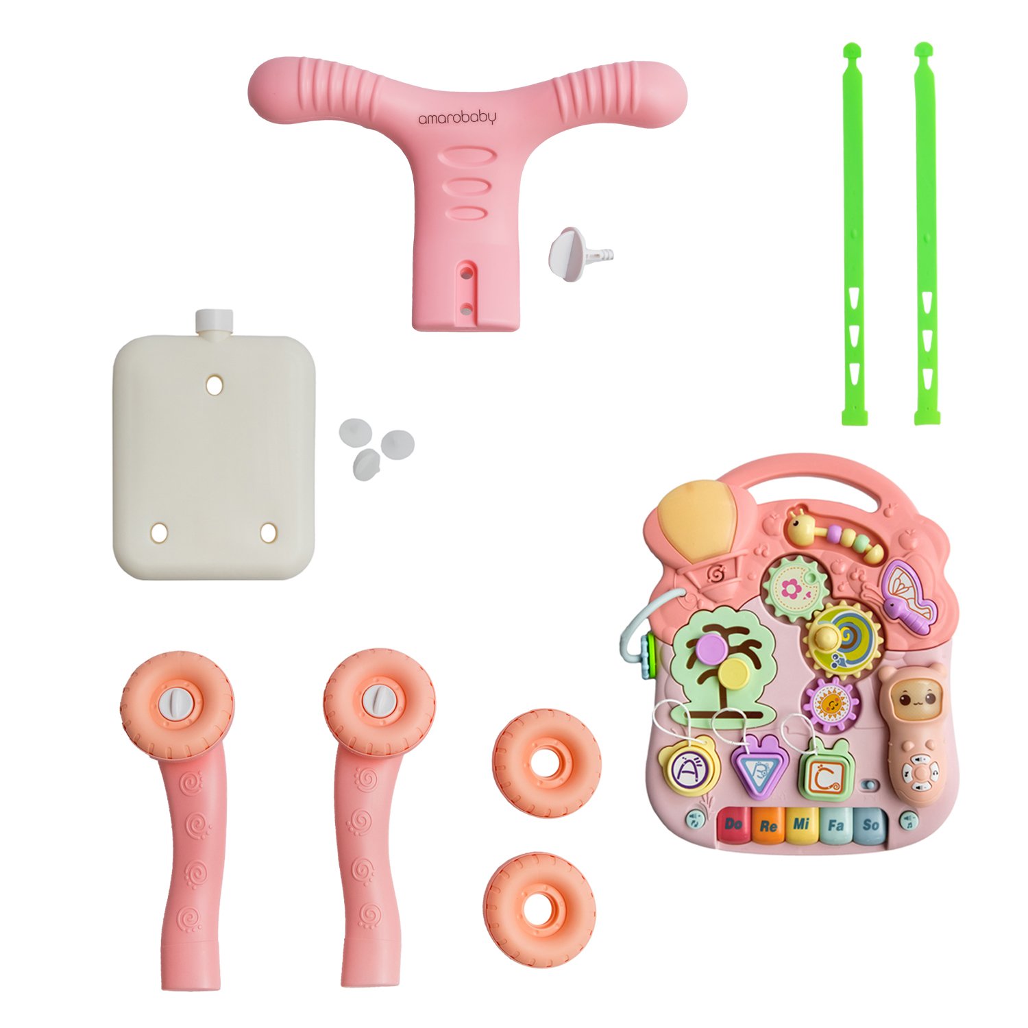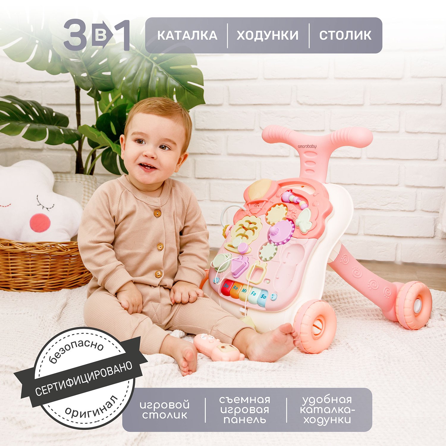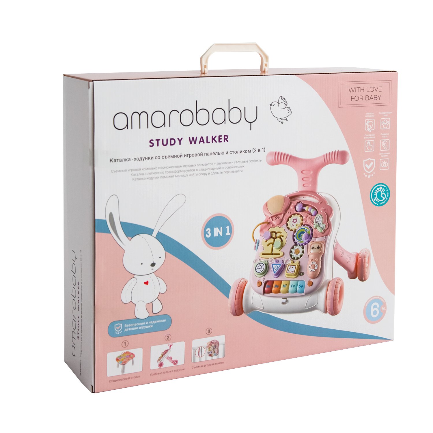 Каталка-ходунки AmaroBaby Study Walker 3в1 музыкальный игровой центр со съемной игровой панелью и столиком розовый AMARO-24SW-RO