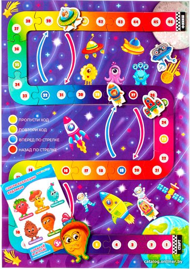 - Комплектация Карточка - поле А3 формата, набор деталей - 33 шт., игровой кубик, инструкция (методические рекомендации), вудлик-магнит