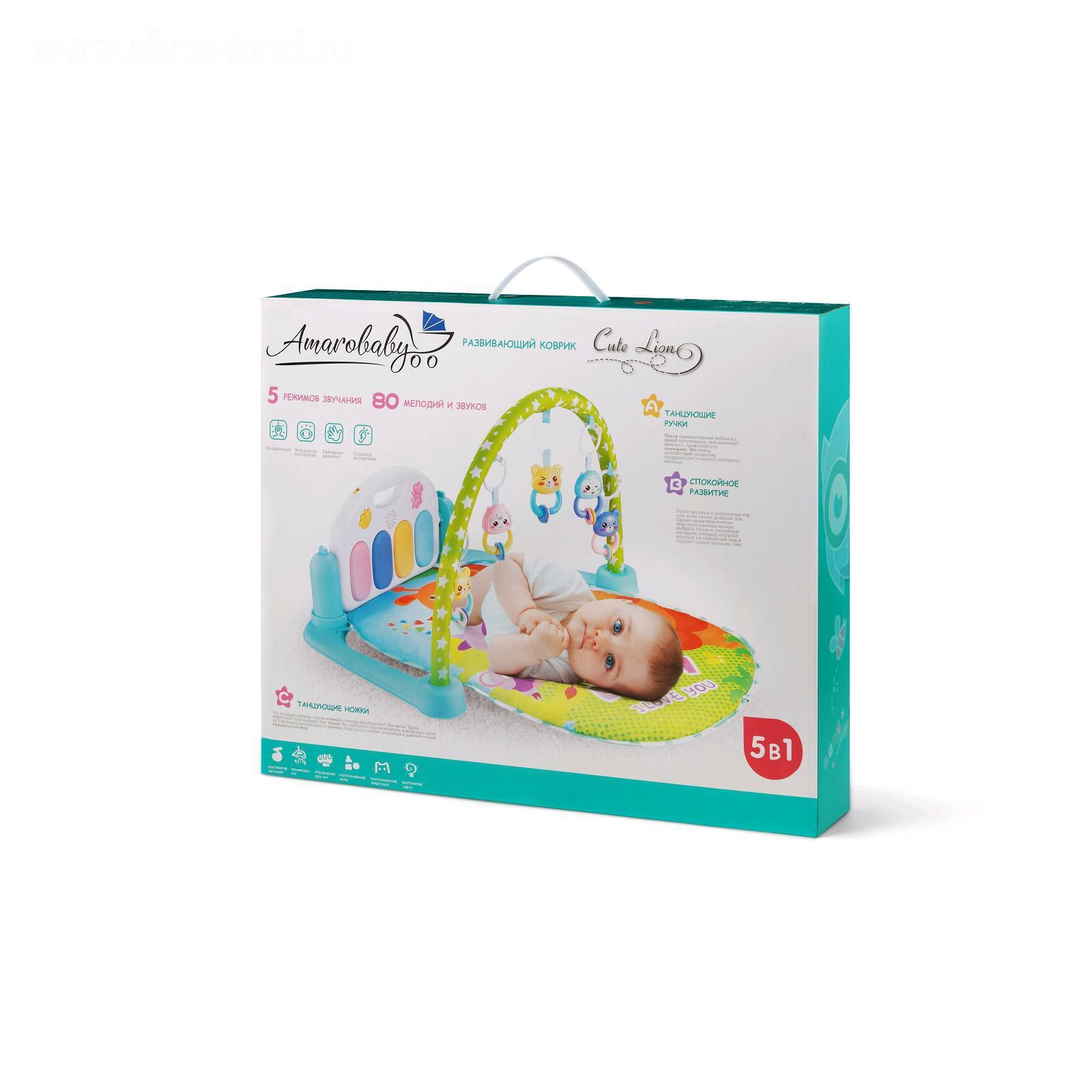 Развивающий коврик для детей Amarobaby «Лев», размер 80 x 65 x 45 см, цвет салатовый