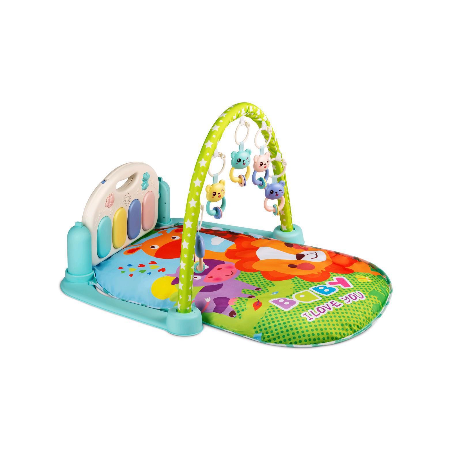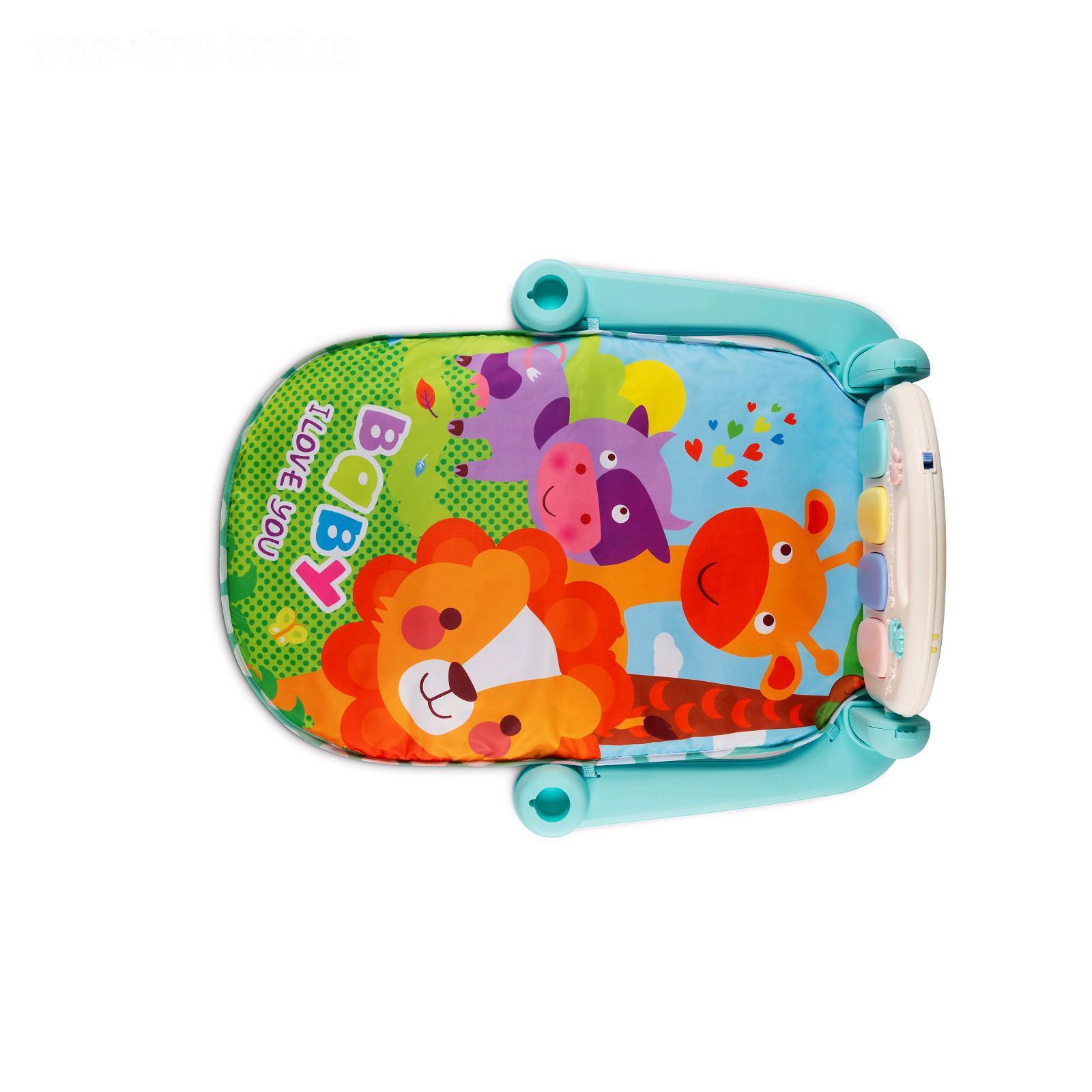 Пианино, расположенное в ногах ребёнка, помогает малышу проявлять физическую активность. Пианино работает на батарейках. Когда малыш подрастёт, то пианино можно поставить горизонтально, и оно будет занимать его ещё долгое время.