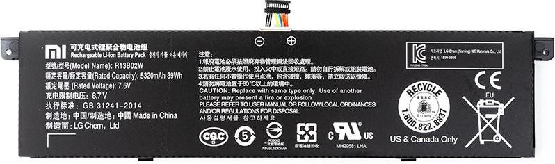 Акумулятор до ноутбука PowerPlant Xiaomi Mi Air 13.3" Series (R13B02W) 7.6V 5230mAh (NB441457)