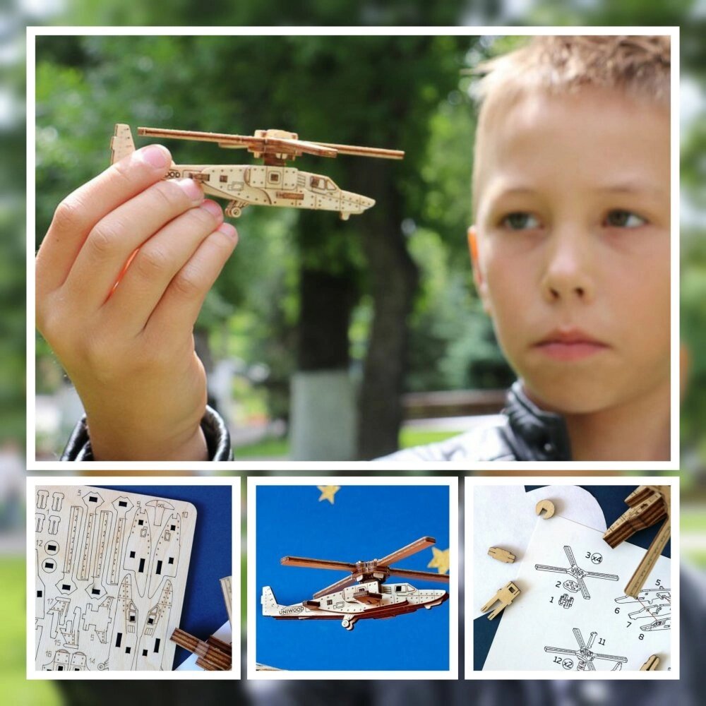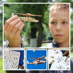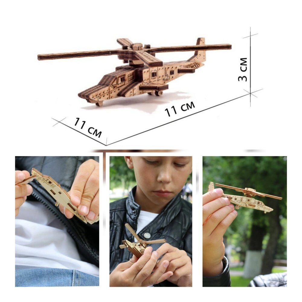 Деревянный конструктор (сборка без клея) Вертолет UNIT HELI UNIWOOD