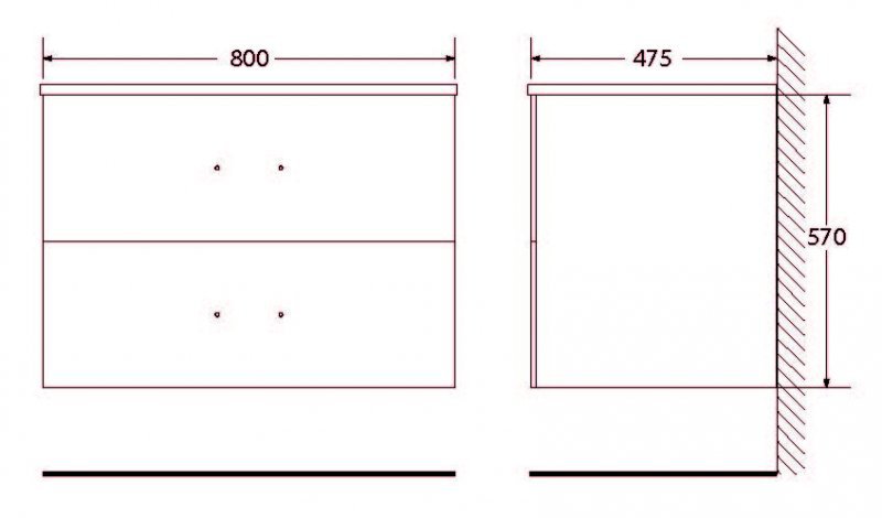 База под раковину подвесная с двумя выкатными ящиками с доводчиками