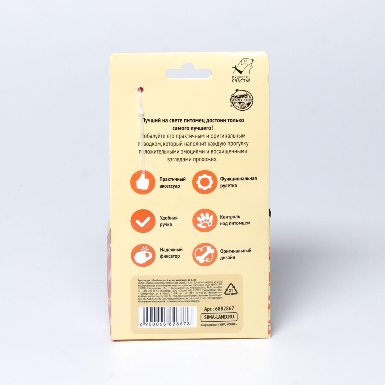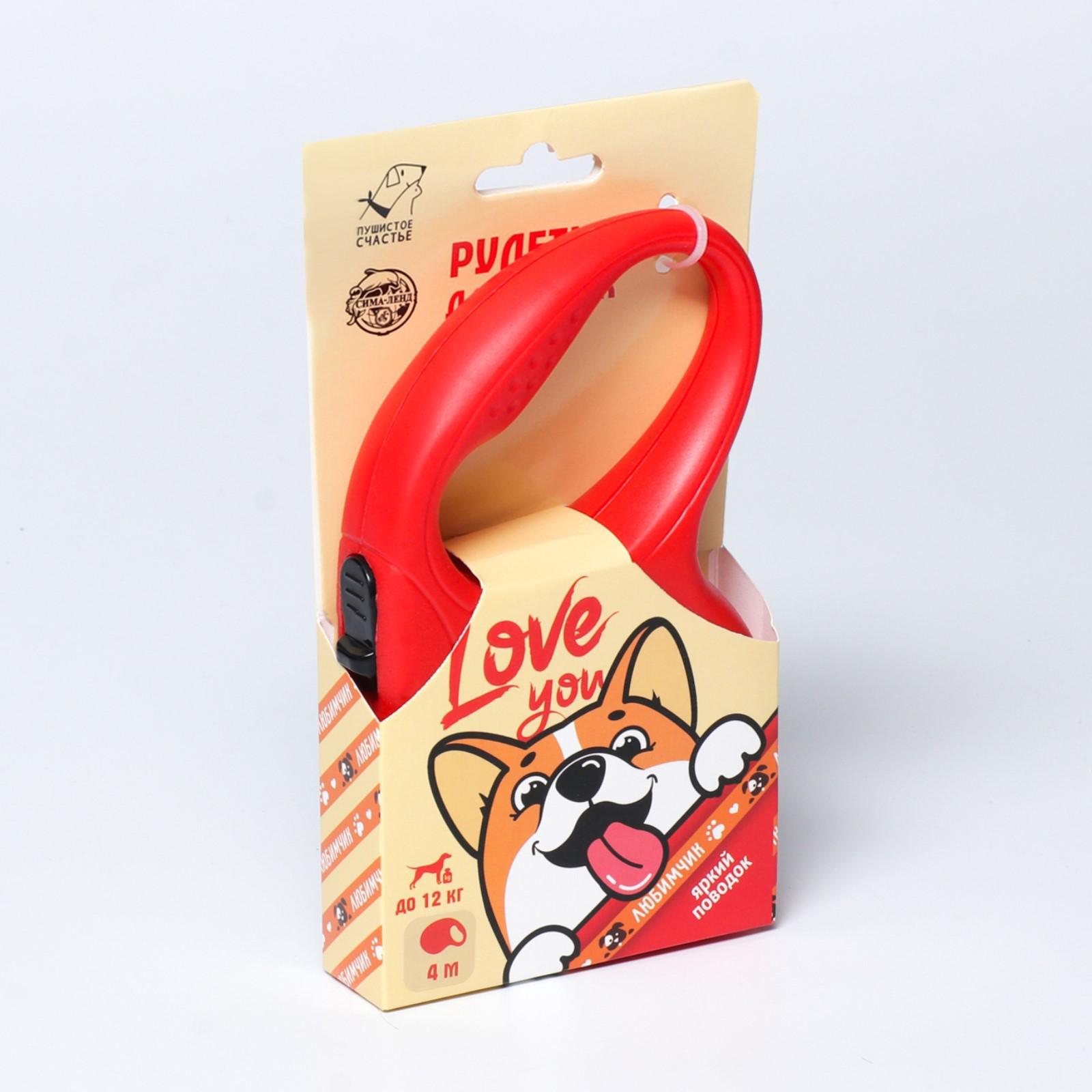 Рулетка для собак Love you, 3,5 м, вес животного до 12 кг