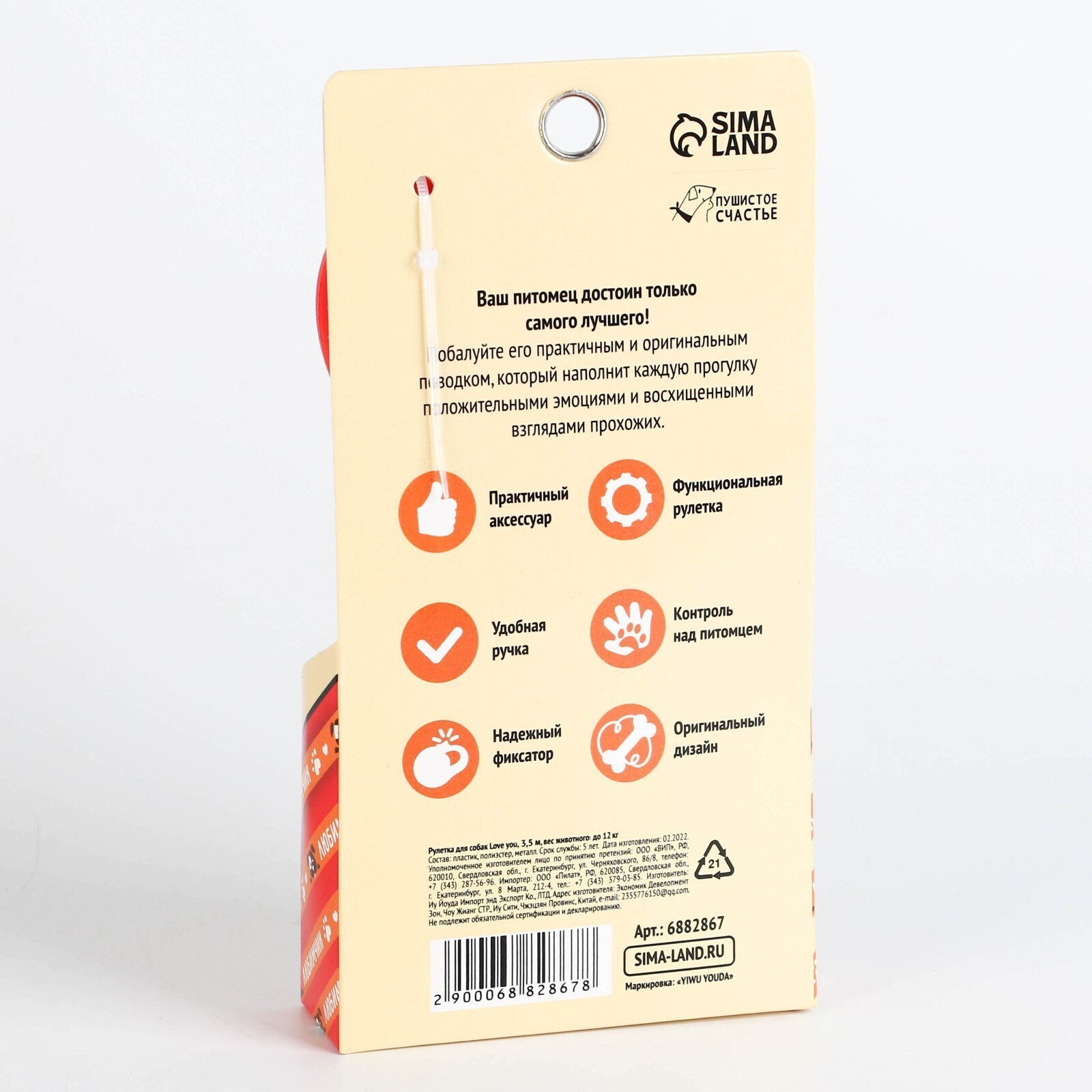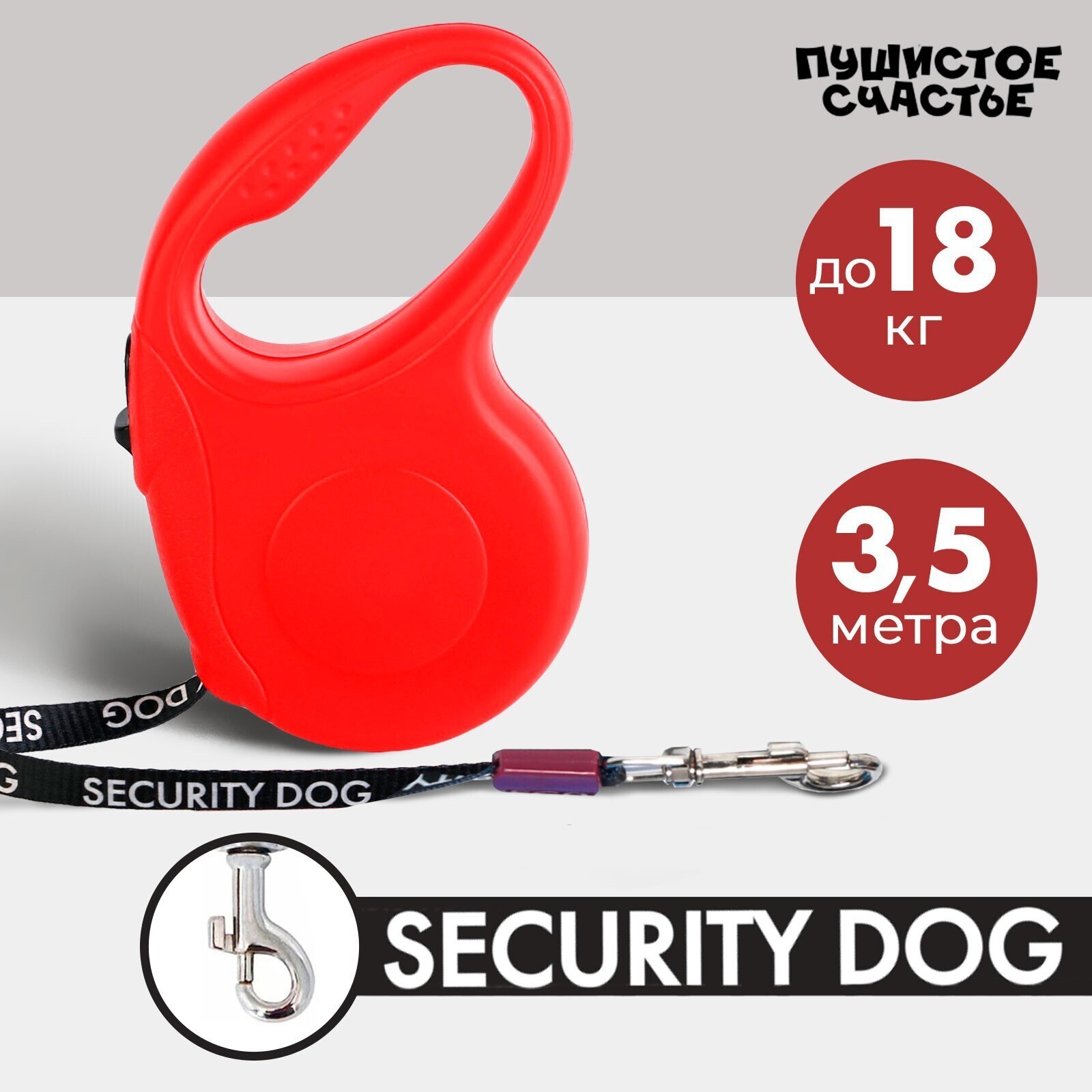 Аксессуар подходит для выгула собак весом до 12 кг, длина поводка 3,5 метра.