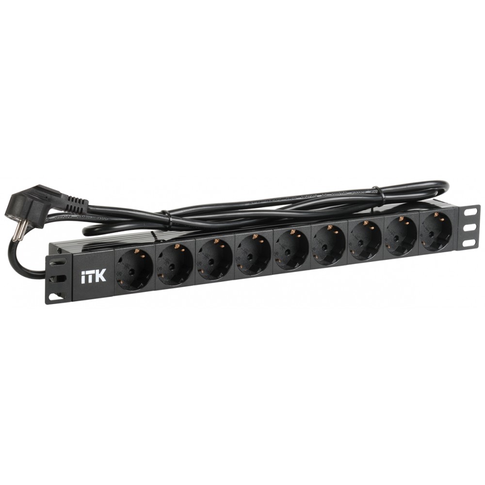 Блок розеток 19\", 1U, 9 гнезд, шнур 2м, вилка нем. ст ал. проф, ITK P