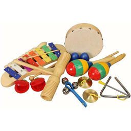 Перкуссионный набор – это набор ударных музыкальных инструментов, не являющихся классическими, как правило, это этнические ударные инструменты. Перкуссионный набор FLIGHT FPS-10 состоит из 10-ти предметов, оформленных в красочном стиле: разноцветного металлофона с палочкой, круглого тамбурина с натуральной мембраной, пары разноцветных маракас, пары пластиковых кастаньет, пары шейкеров в форме яиц, цимбал, гуиро, тон-блока, металлического треугольника с палочкой и джингл-стика. Набор упакован в красочную сумочку и станет отличным подарком для тех, кто неравнодушен к музыке, а также подойдет детям в качестве первого знакомства с музыкальными инструментами.