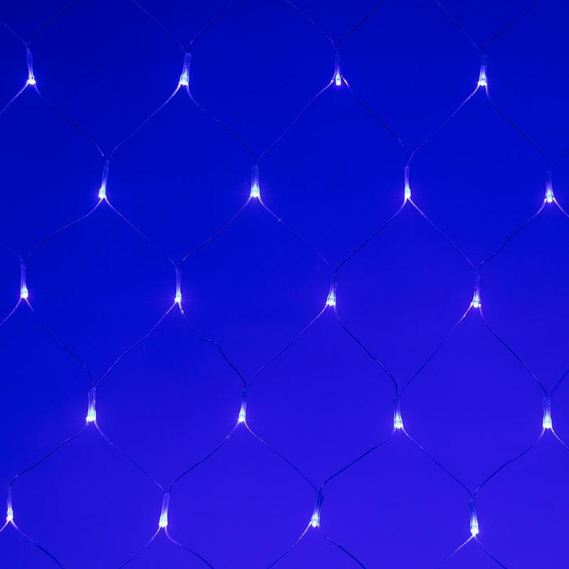 Светодиодная гирлянда СЕТЬ серии HOME. Размер 1500x1500 (длина 1500 мм, высота 1500 мм). Цвет светодиодов СИНИЙ, постоянное свечение и 8 динамических эффектов. Провод из прозрачного ПВХ, диаметр 2 мм. 150 светодиодов размером 5 мм, прозрачный вогнутый колпачок. Напряжение питания 230 В, потребляемая мощность 12 Вт, степень пылевлагозащиты IP20. Аксессуар для подключения и выбора режима свечения в комплекте.