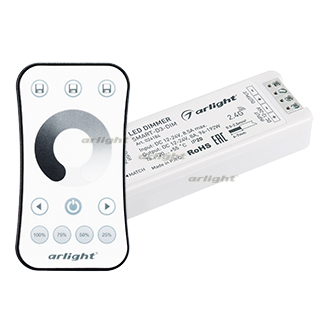 Комплект диммера с пультом для одноцветной светодиодной ленты (ШИМ). Питание/рабочее напряжение 12-24VDC, максимальный ток 8A на канал, 1 канал, максимальная мощность 96-192W. Функция Push-switch. Габариты диммера 97x33x18 мм, габариты пульта 107x58.5x9 мм.