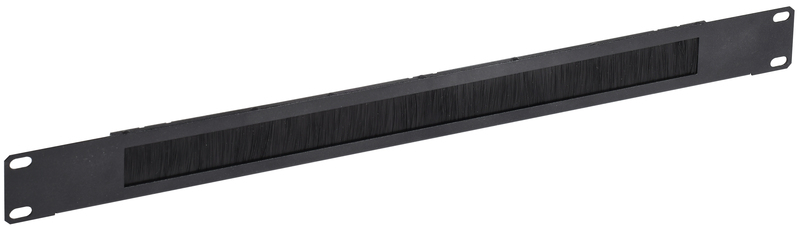 Щеточные кабельные вводы предназначены для заведения кабелей и шнуров внутри шкафа, предотвращают попадание пыли в шкаф и на оборудование при заведении кабельных линий. Ввод щеточный предотвращает излом кабеля при выводе его к коммутационным панелям и другому оборудованию. Форм-фактор монтажа 19".