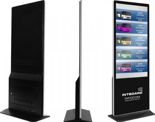 Вертикальний інтерактивний кіоск – це пристрій, що суміщує комп’ютер, монітор і сенсорний екран.