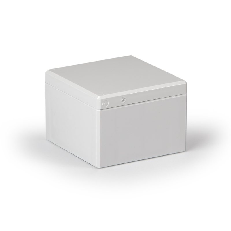 Ensto Cubo D is a series of small enclosures with plain sides. Special features include fastening pods inside the cover and slots for printed circuit boards in the base.